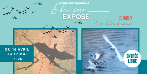 Du 16 avril au 17 mai 2026, l’exposition de photographie de Charly, et ses drôles d’oiseaux, sera en place au bar thérapeutique.