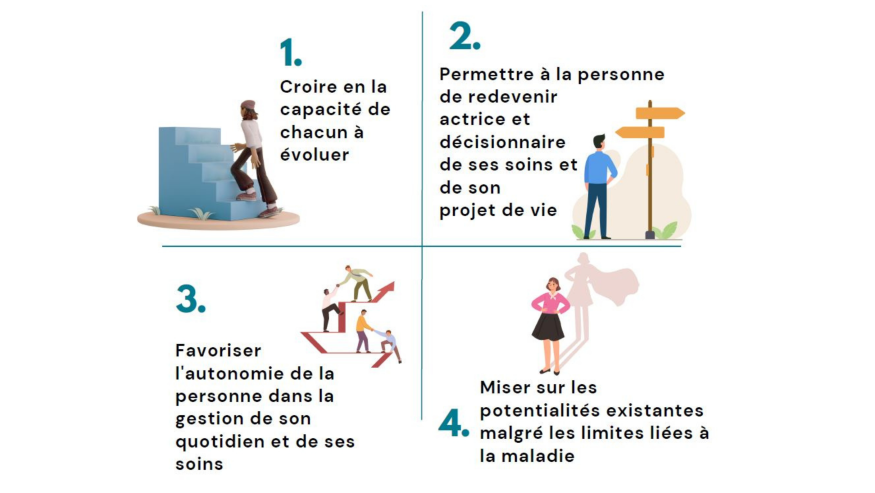 Le pôle de réhabilitation Psychosociale, ouvert depuis janvier 2025 est fondé sur des valeurs humanistes de respect, d’ouverture, d’acceptation et de bienveillance.